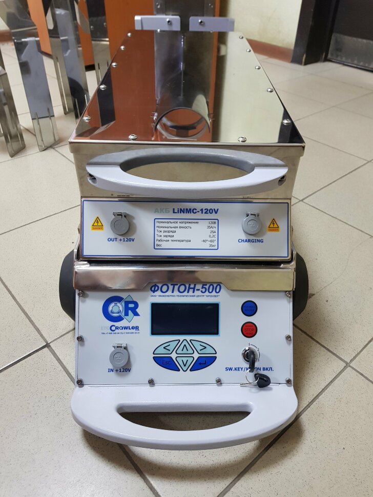 1. Аккумуляторный блок кроулера емкостью 35 А/ч. оснащен инновационными, морозостойкими, герметичными литиевыми аккумуляторами, срок службы которых не менее 10 лет, и в отличие от свинцовых аккумуляторов, которые теряют 50% емкости уже при -20 С, применены аккумуляторы, которые теряют не более 10% емкости при температуре окружающей среды -45 С.