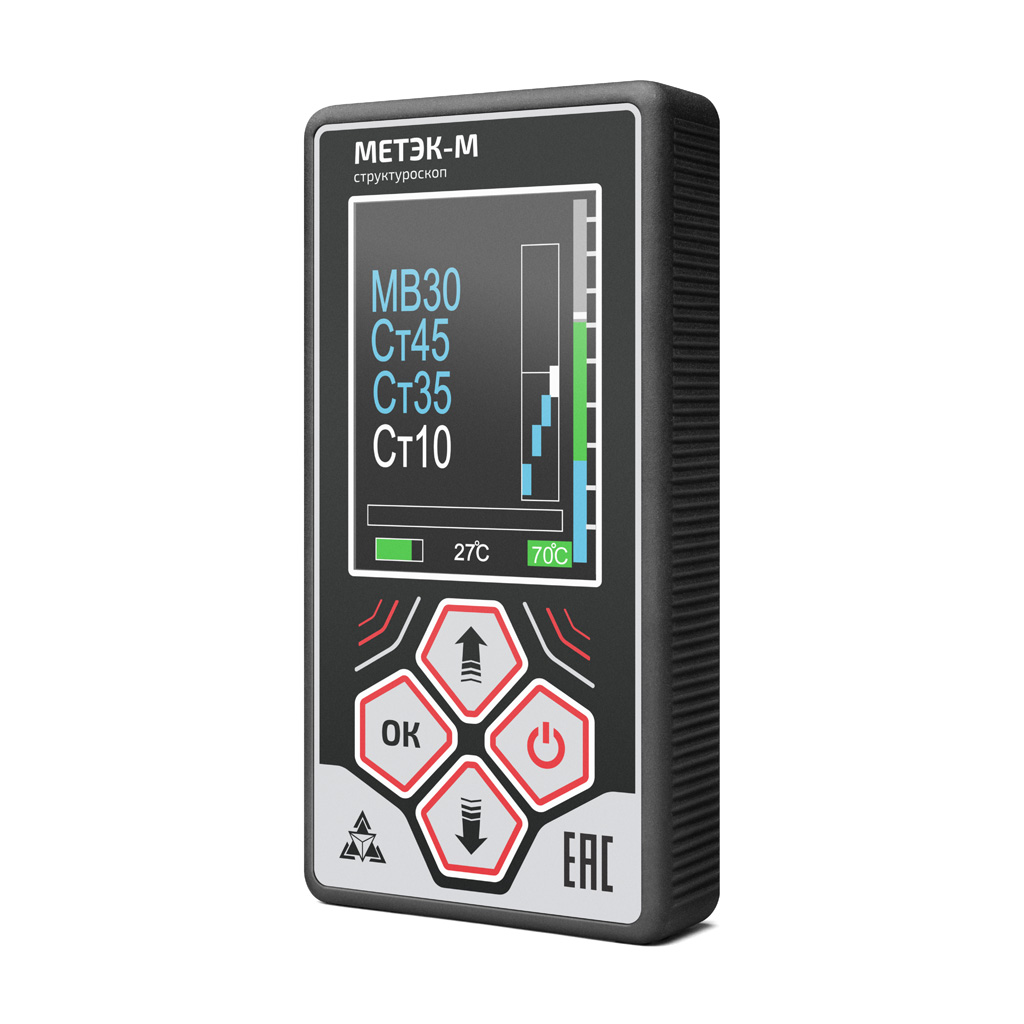 Структуроскоп МЕТЭК-М — портативный прибор с цветным графическим дисплеем и литиевым аккумулятором, позволяющий быстро и точно определить изменения в структуре и химическом составе различных сплавов, как черных, так и цветных металлов.